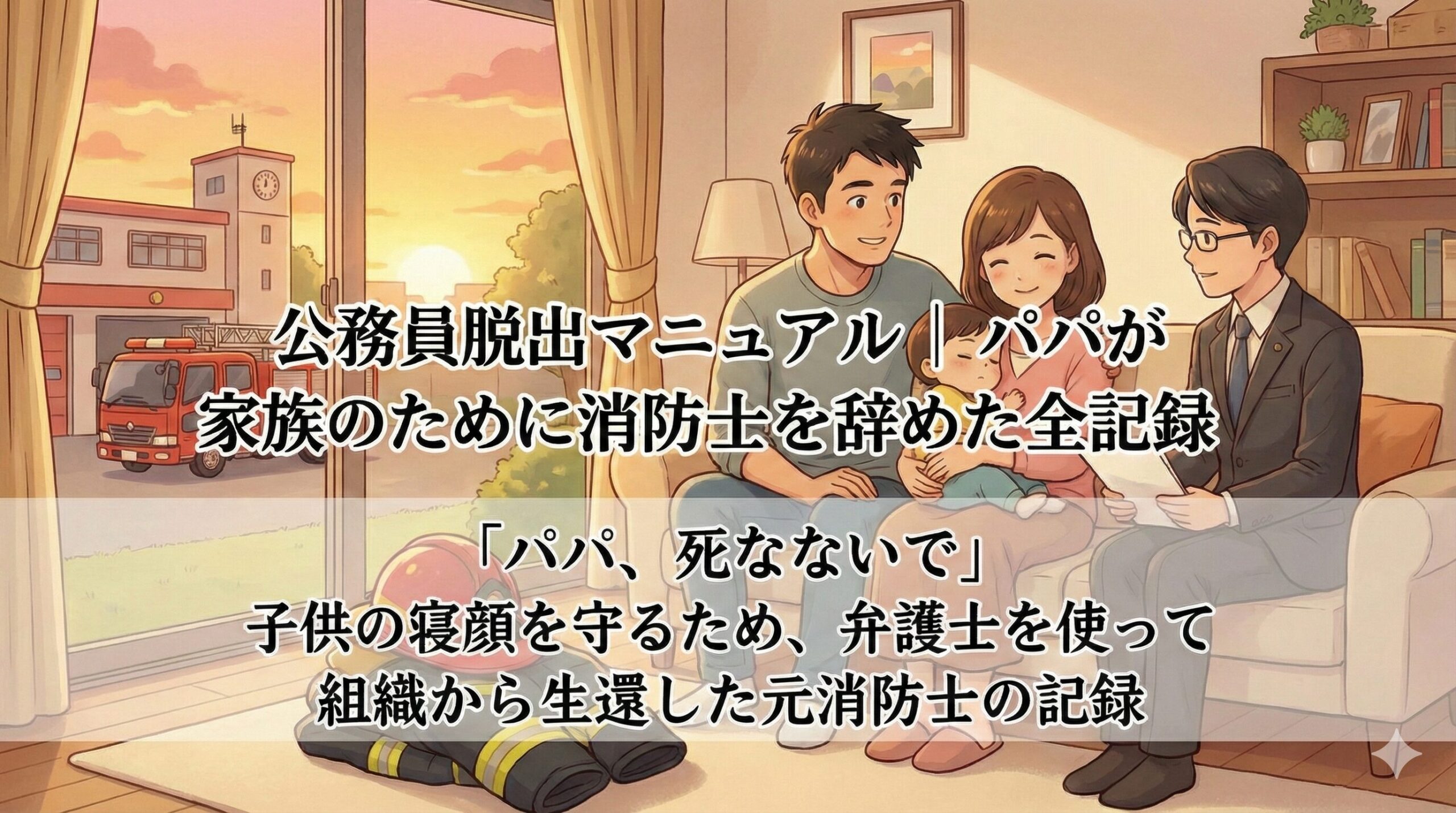 はじめまして。「元消防士パパ」です。 このブログに辿り着いたあなたは今、毎朝起きるのが怖くて、出勤する車の中で吐き気と戦っているかもしれません。 私はただの「元消防士」ではありません。 厳格な規律と組織の理不尽さを、幼い頃から見せてくれた「...